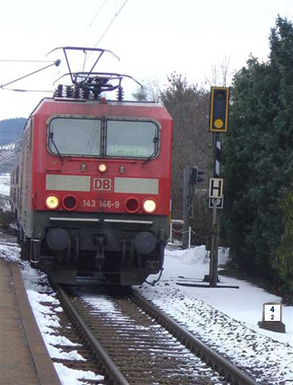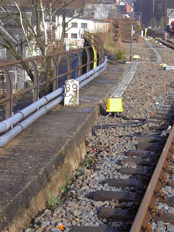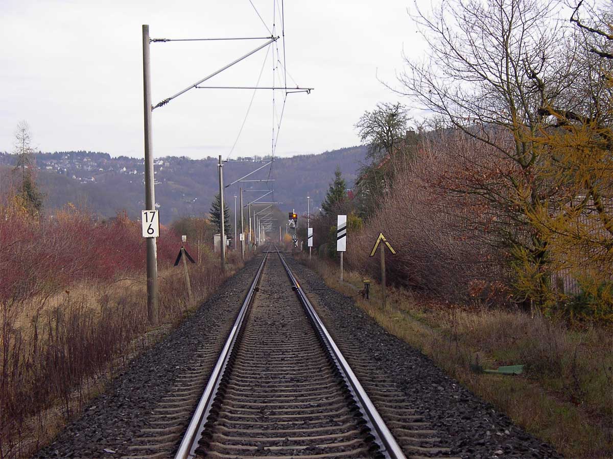 m. Diese Fehllänge lag im Bereich Sonneberg Hbf zwischen km 19,5 und 19,7. Dort existierte die Fehllänge bis zur Inbetriebnahme des ESTW Sonneberg am 15.12.2002.Dabei wurde die Strecke von Sonnebrg (Thür) Hbf bis zum Bf Lauscha neu vermessen und umkilometriert. Die Fehllänge wurde in den Bf Lauscha (Spitzkehrenbf) verschoben. Lauscha (kommend von Coburg) km 38,44 Lauscha (gehend nach Ernstthal am Rennsteig) km 38,66 |