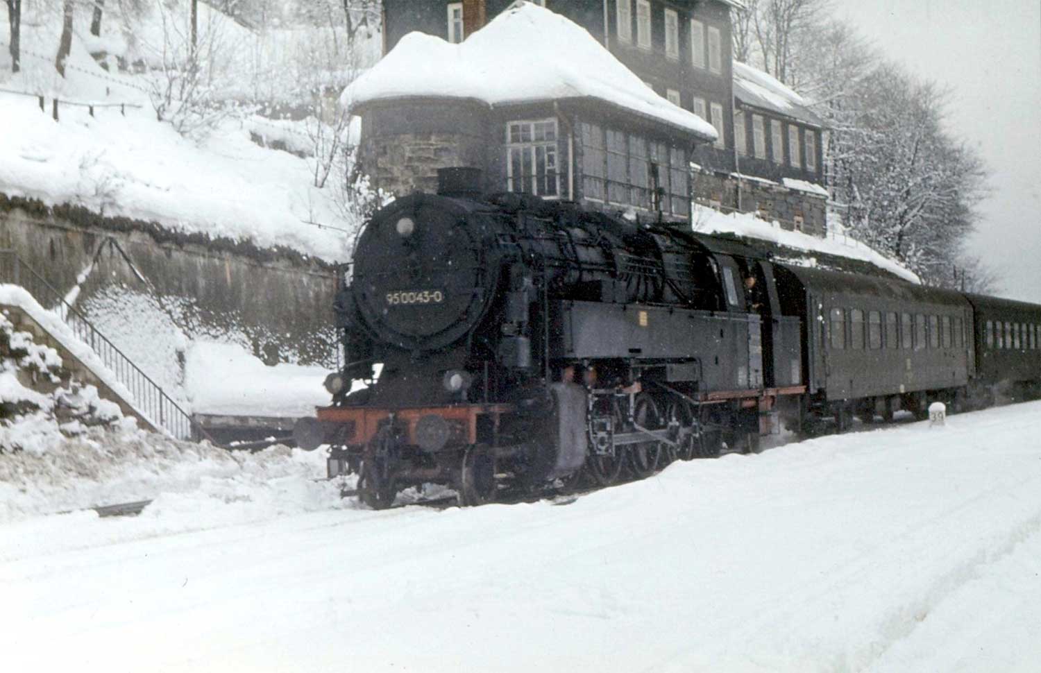 95 1016 bei der Einfahrt in den Bf Lauscha aus Ri Sonneberg