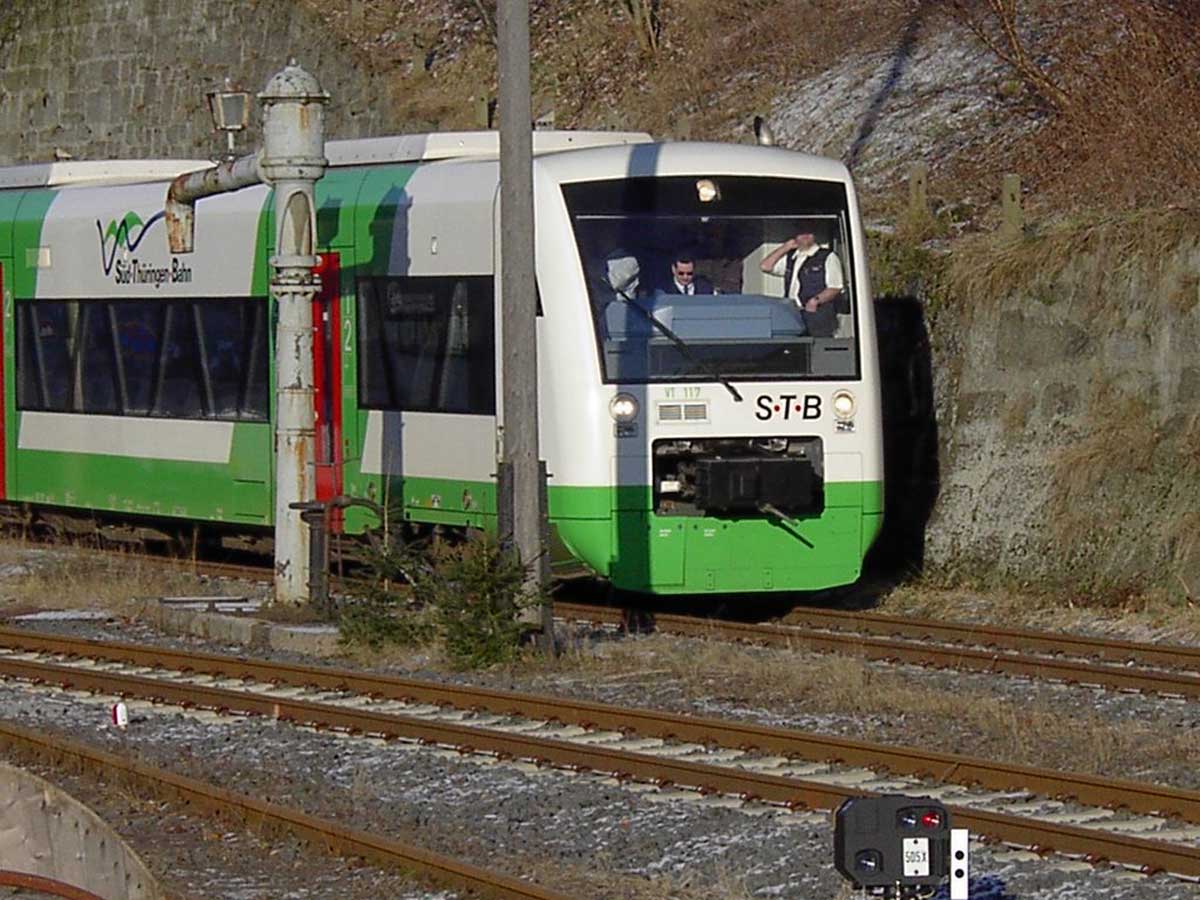 STB fährt in den Bf Ernstthal am Rennsteig ein