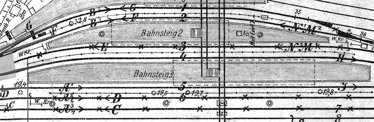Auf den beiden obigen Bildern stand zwischen den beiden Gleisen ein Lokschuppen.