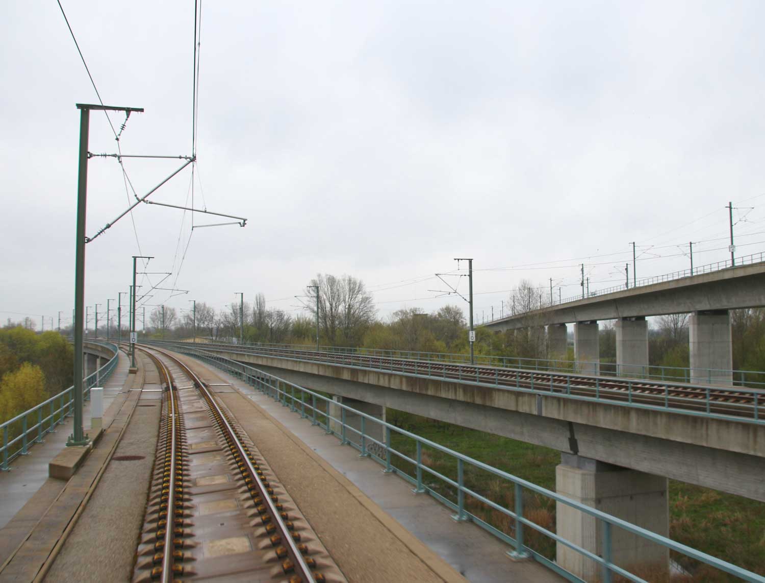 km 308,2 zwischen Leipzig Messe und Leipzig Hbf im Bereich Leipzig Nordkopf - Blick Richtung Erfurt Hbf - Nürnberg Hbf