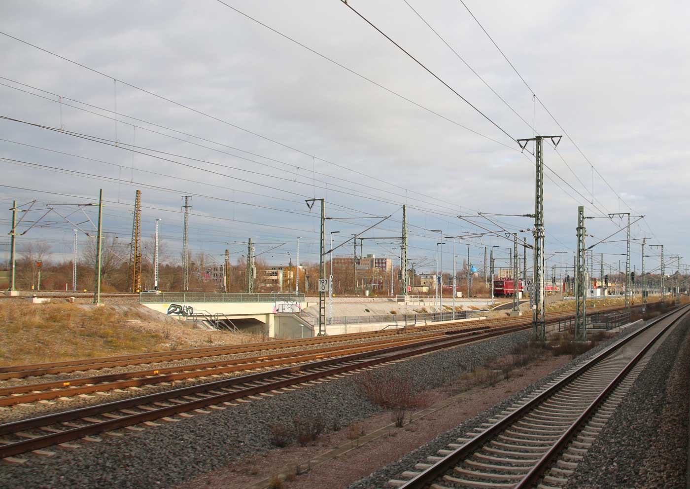 km 309,6 zwischen Leipzig Messe und Leipzig Hbf - Blick Richtung Leipzig Hbf