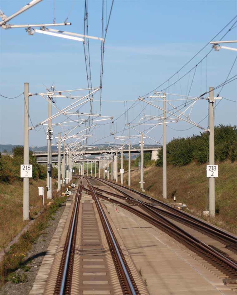 km 218,2 und km 218,4 in Großbrembach - Blick Richtung Leipzig