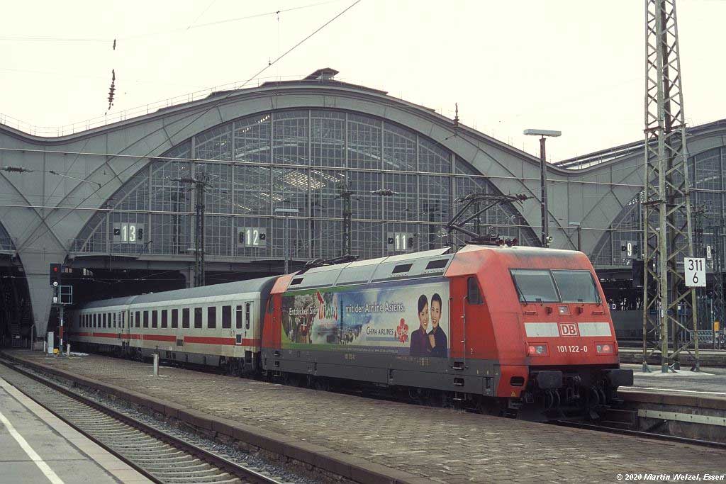 km 311,6 in Leipzig Hbf - 101 122 schiebt den IC 2142 (Köln - Leipzig)