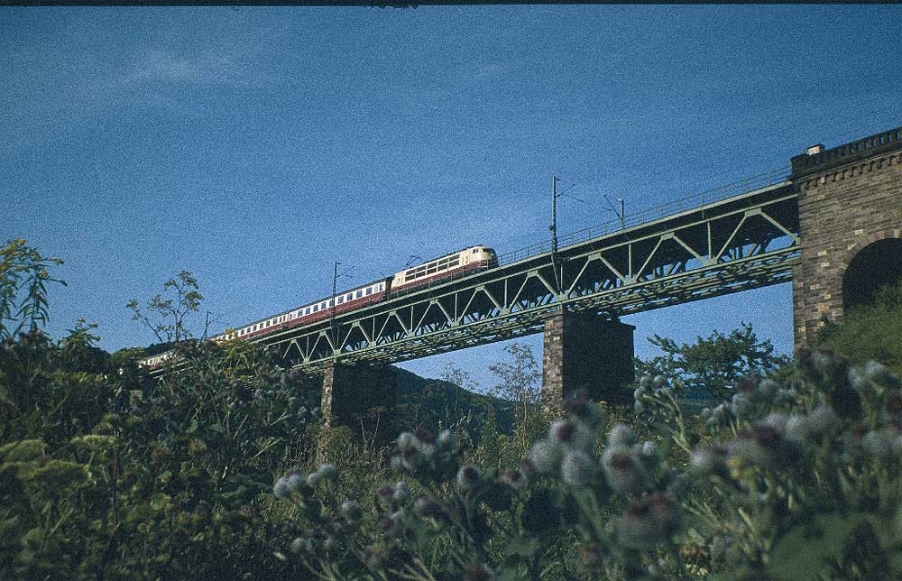 Werrabrücke bei Oberrieden mit IC am 24.08.1978