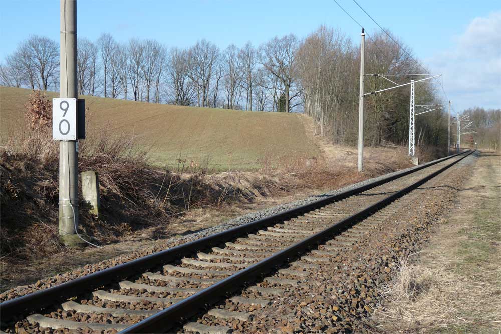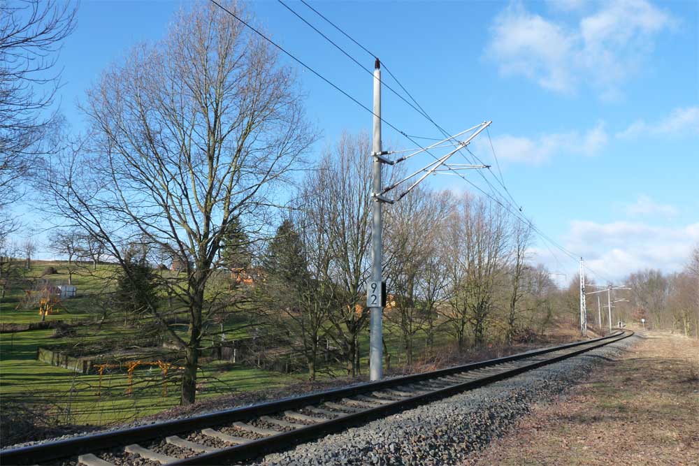 km 9,0 - man beachte die Einfach-Oberleitung (ohne Tragseil)