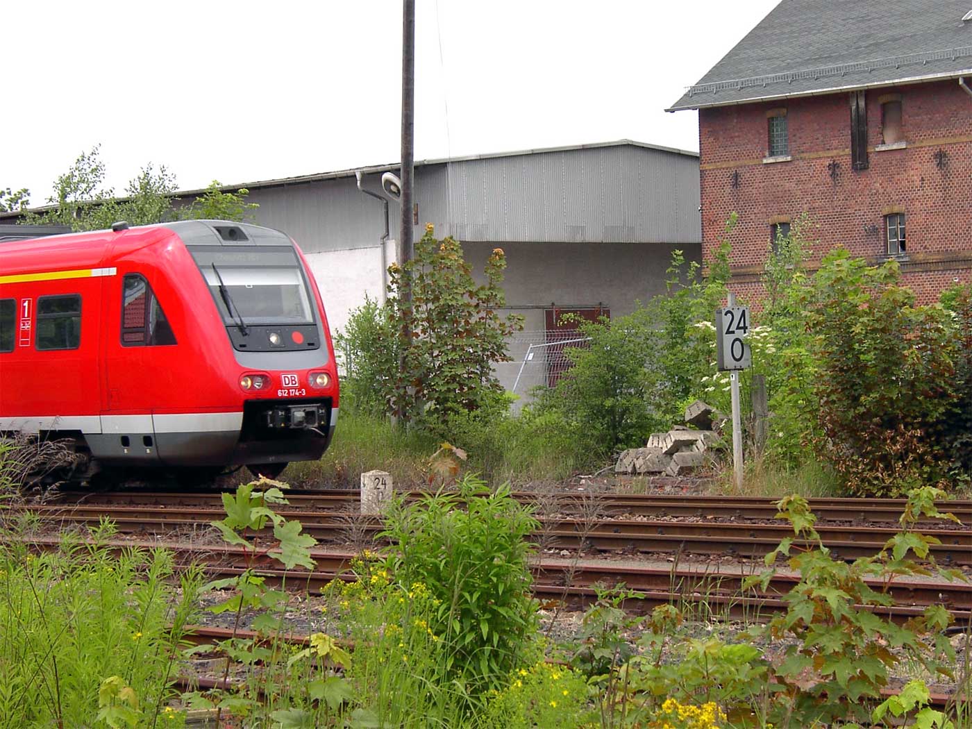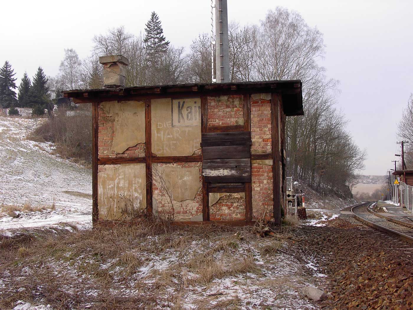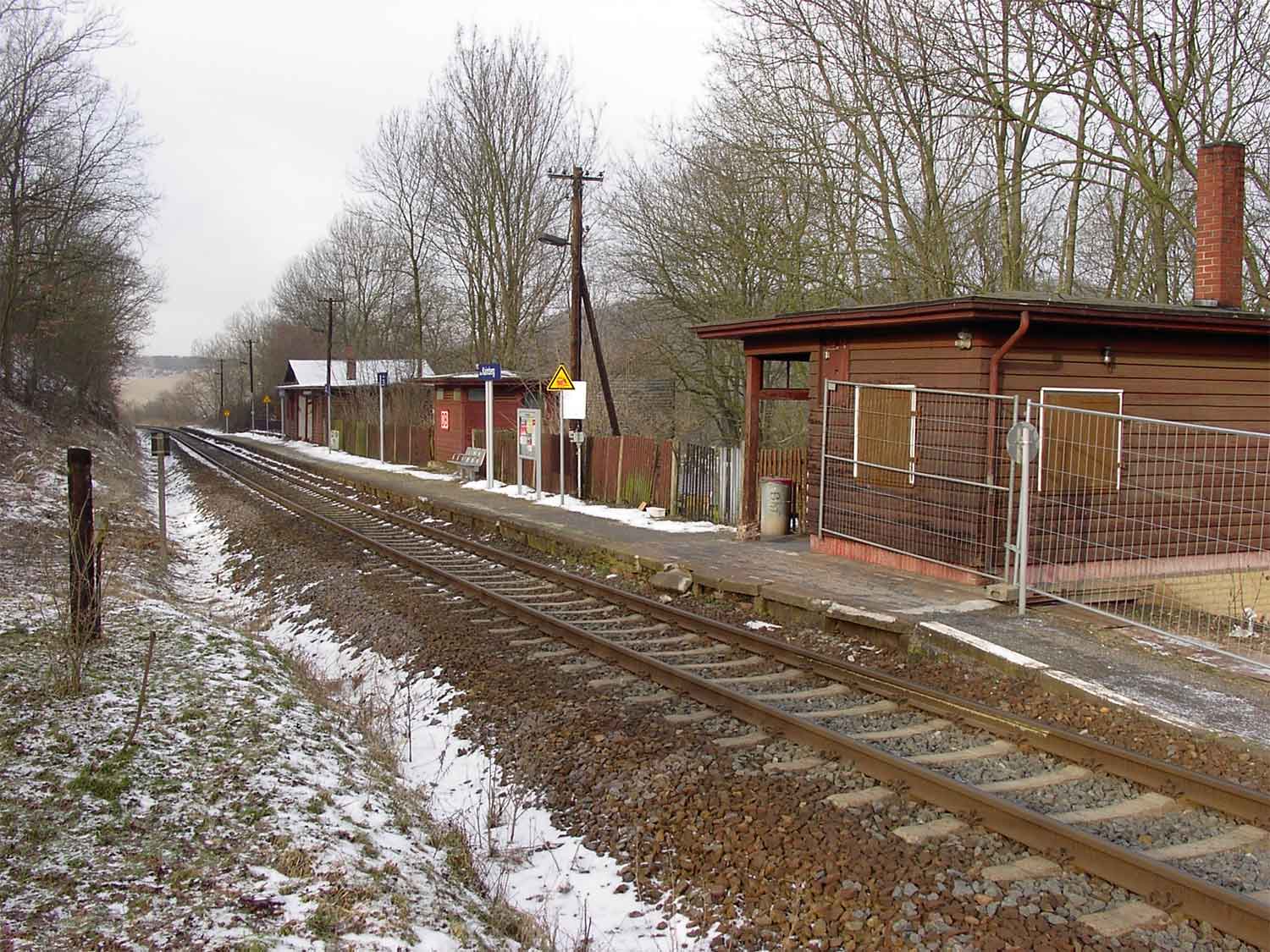 Raitzhain | 22,51 | km 25,44 der Strecke Streckenanfang Bf Kayna 0,0 - Kayna 0,8 - km 11,808 = km 19,550 - Großenstein (Kr Gera) 20,22 - Raitzhain 25,40 |