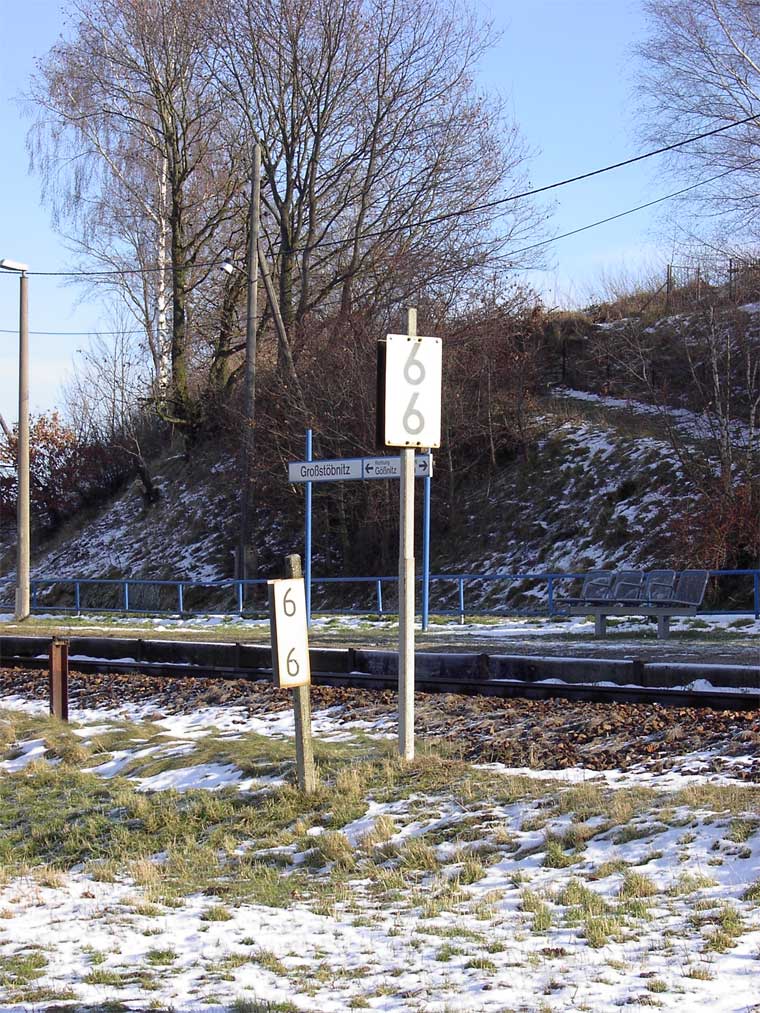 km -0,12 der Strecke Gera Süd -0,12 - Wünschendorf (Elster) 9,40 - Greiz 30,66 - Weischlitz 59,90 (GWz) | ||