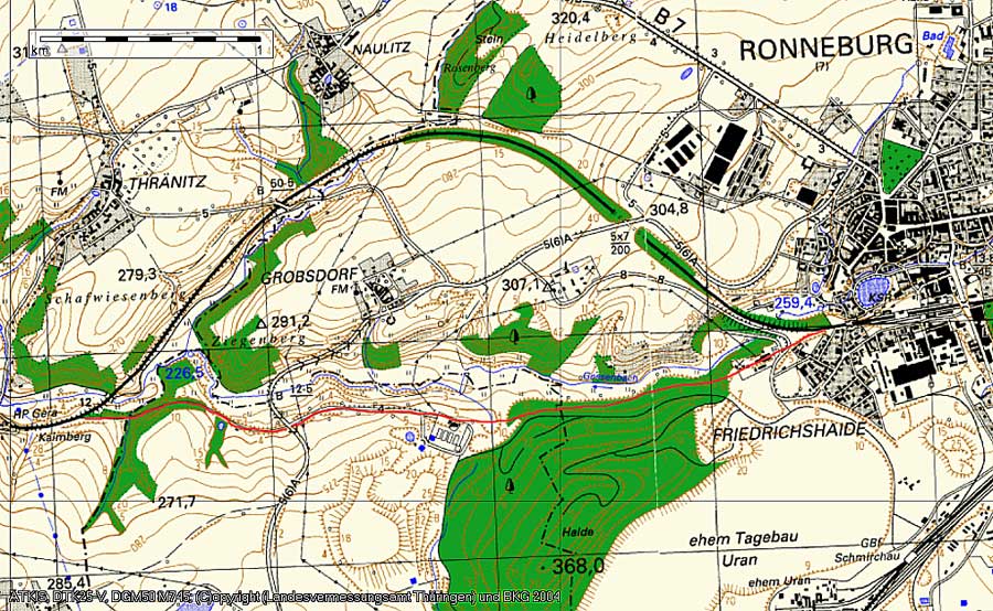 Gößnitz -0,37 - Ronneburg (Thür) 24,23 - Abzw. Gera-Debschwitz 32,38 - (Gera Süd 33,48) (ab 2006)