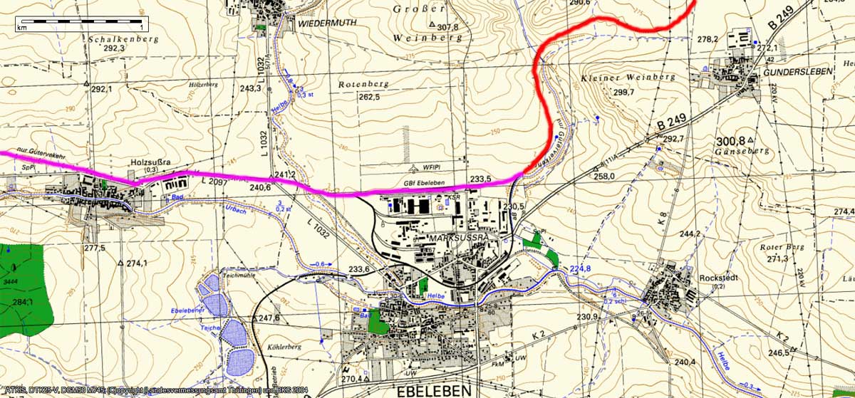 Rot: Hohenebra - Abzw Ebeleben Süd