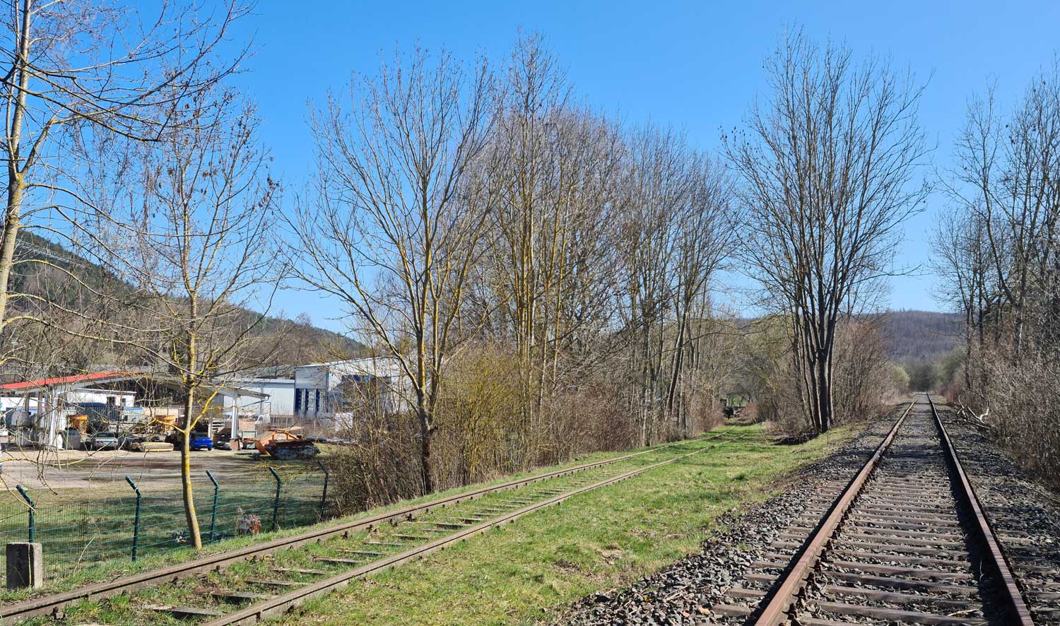 - Schwebda Rechts das Streckengleis, links das Anschlussgleis