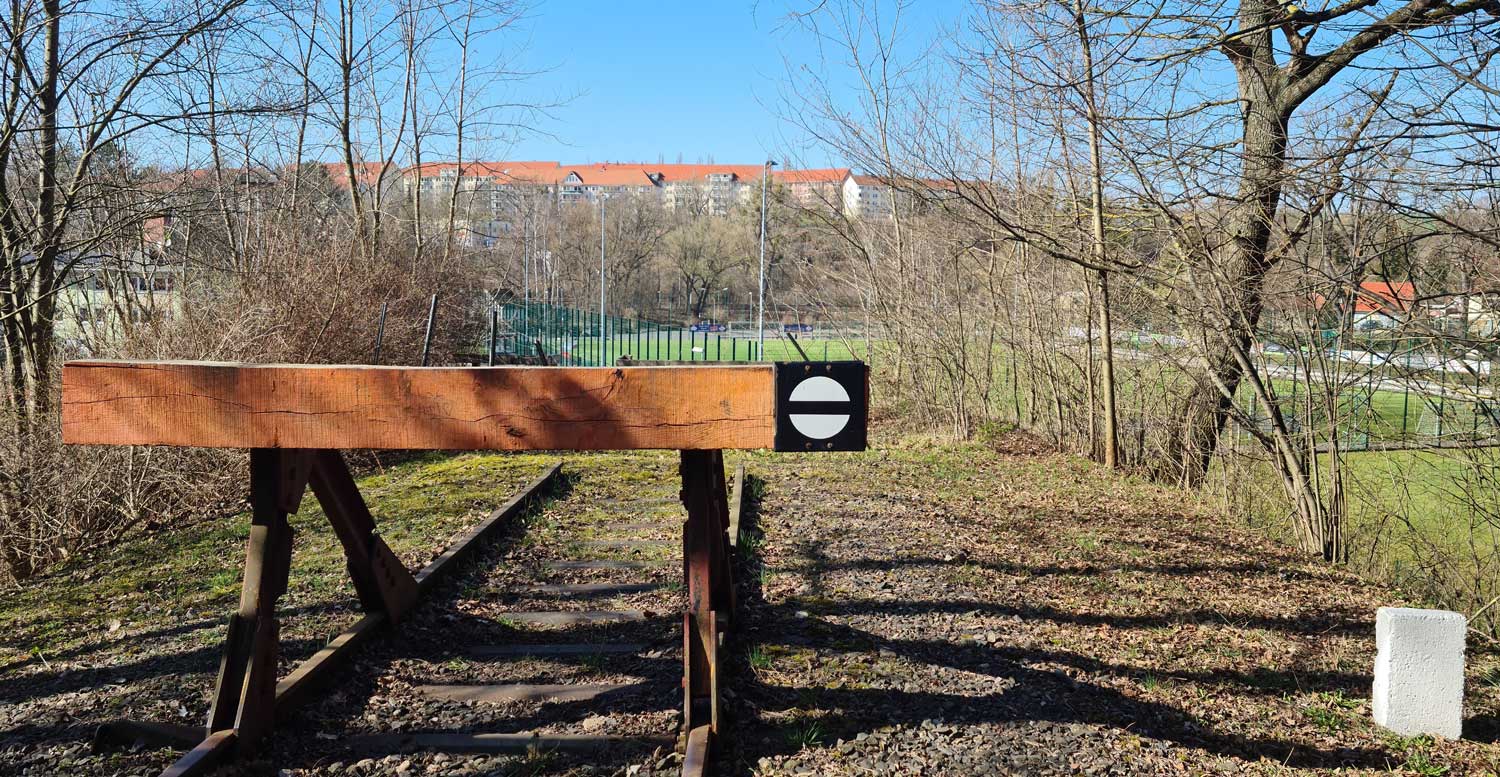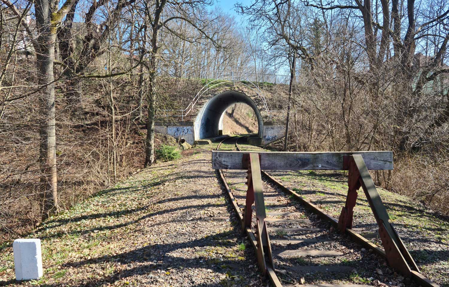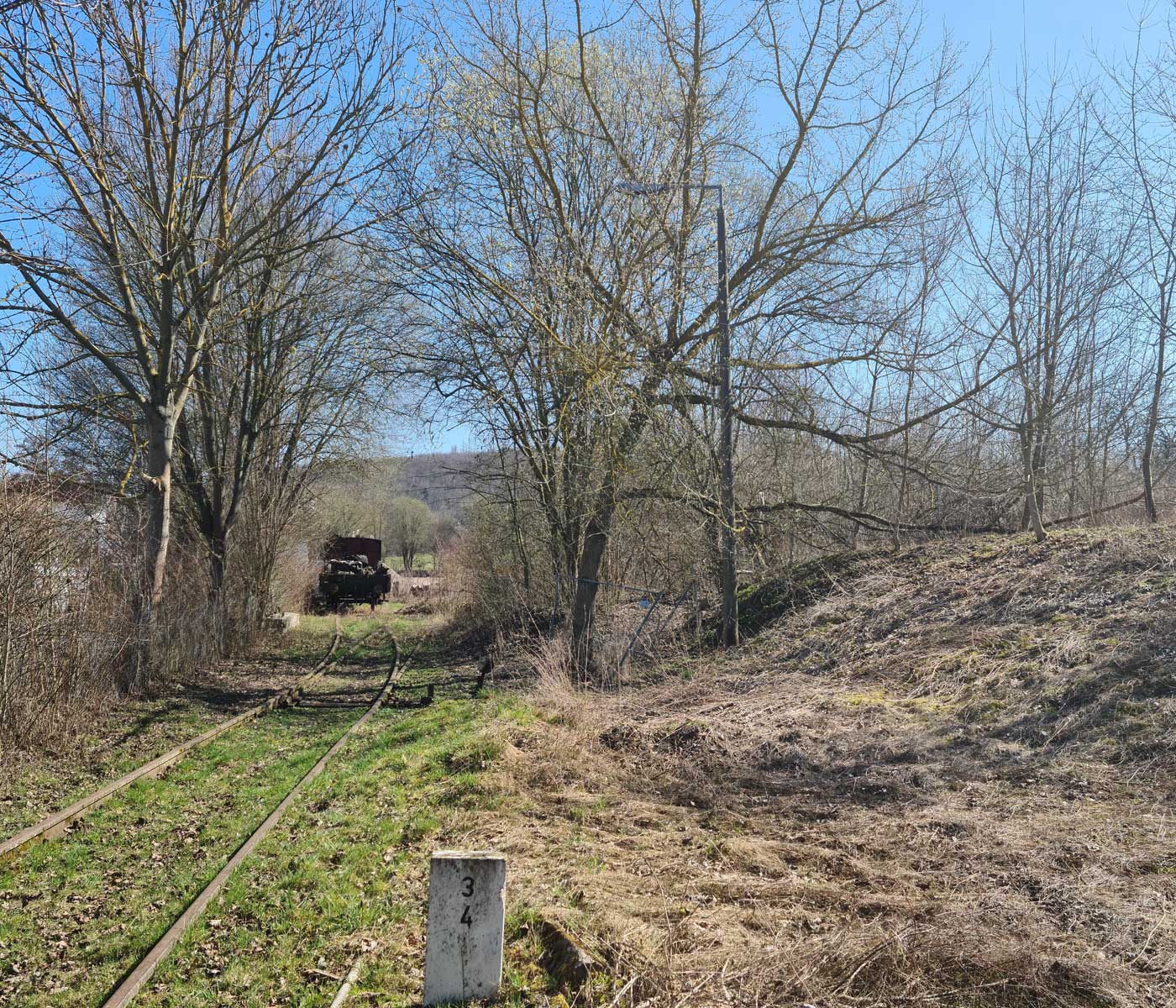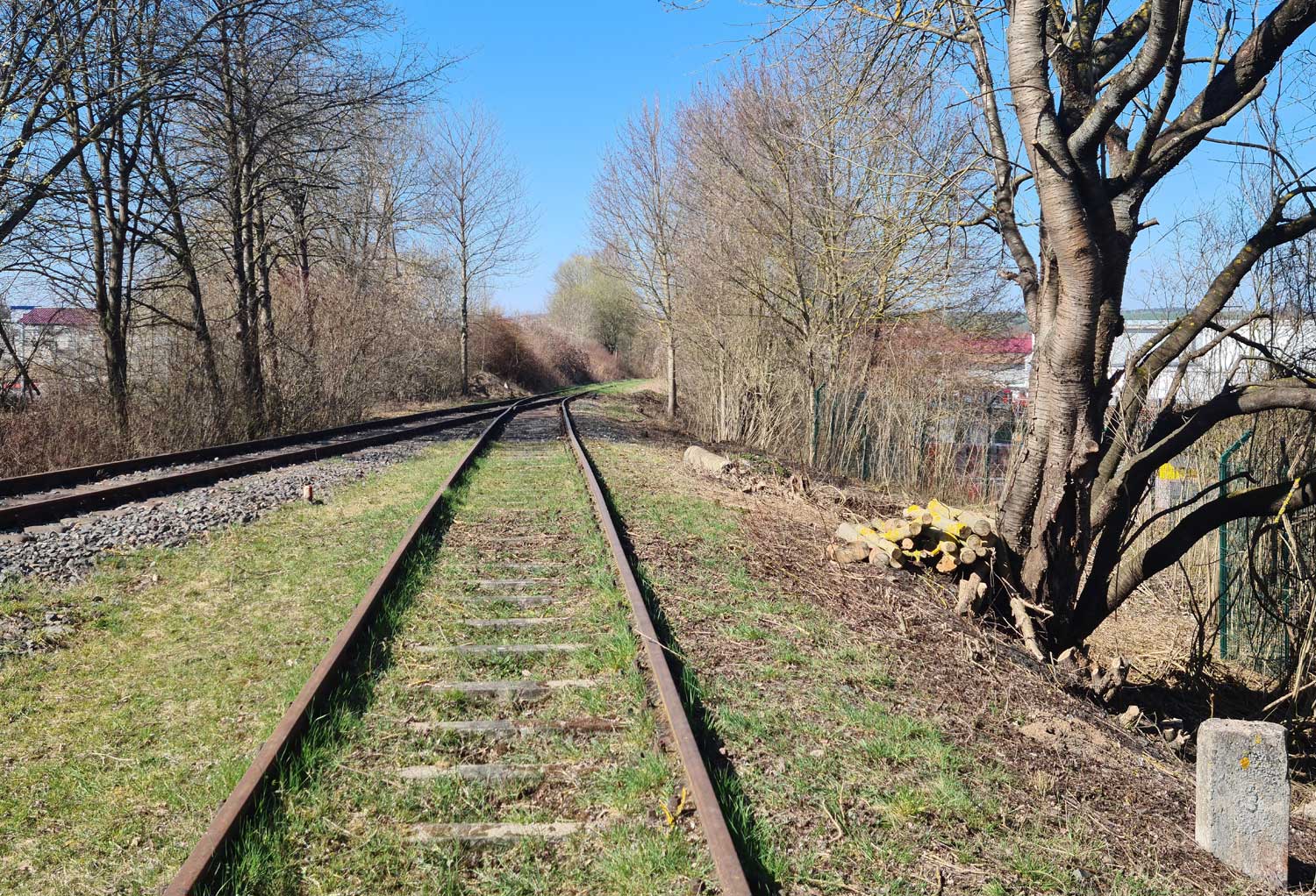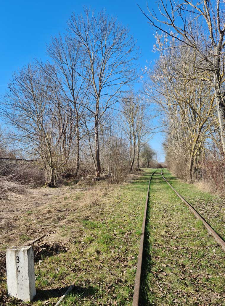 Links das Streckengleis, rechts das Anschlussgleis zur Papierfabrik