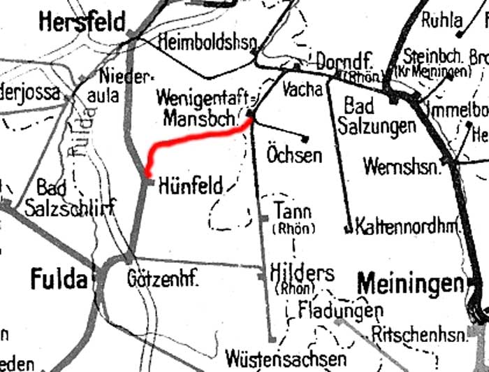 | Hünfeld - Wenigentaft-Mansbach | 26,44 km | Eröffnung: 01.12.1906 |