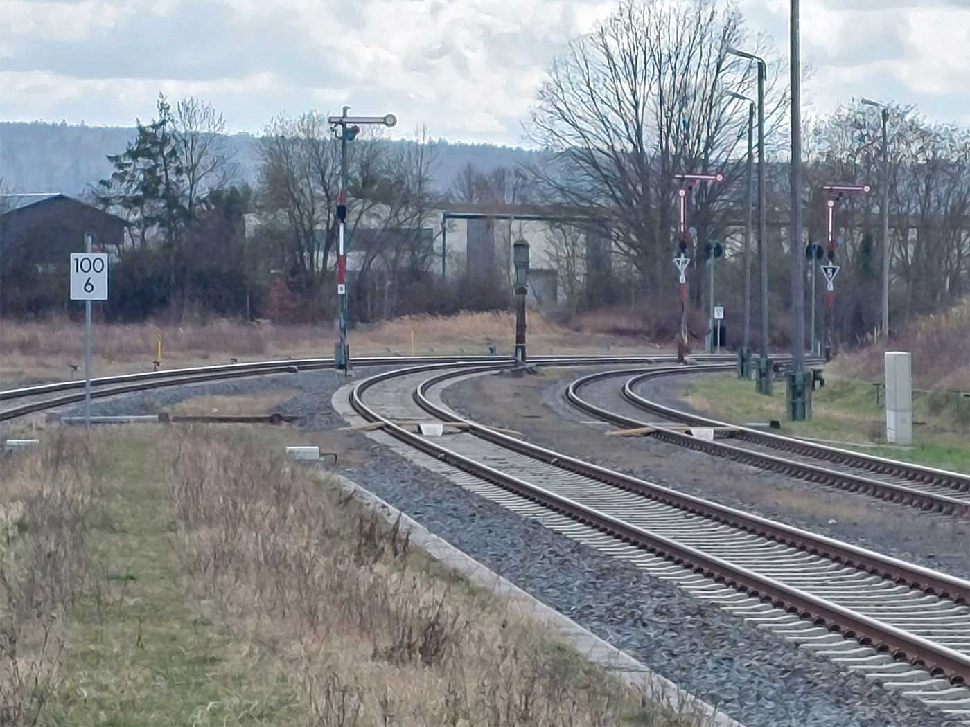 km 123,8 in Pößneck ob Bf - Blick Richtung Leipzig