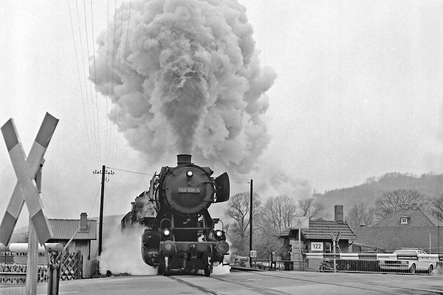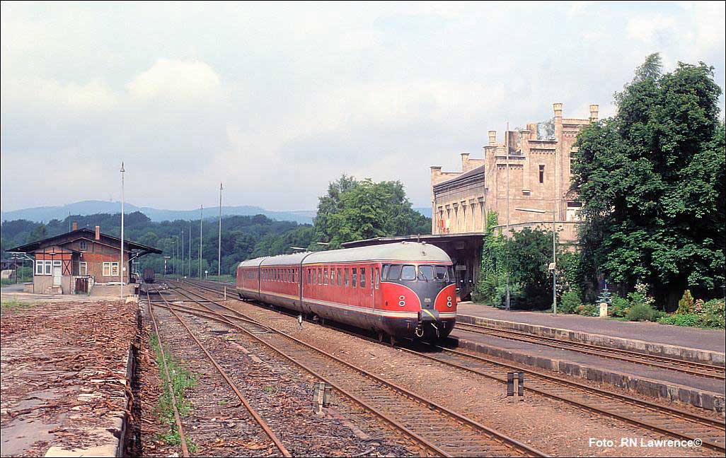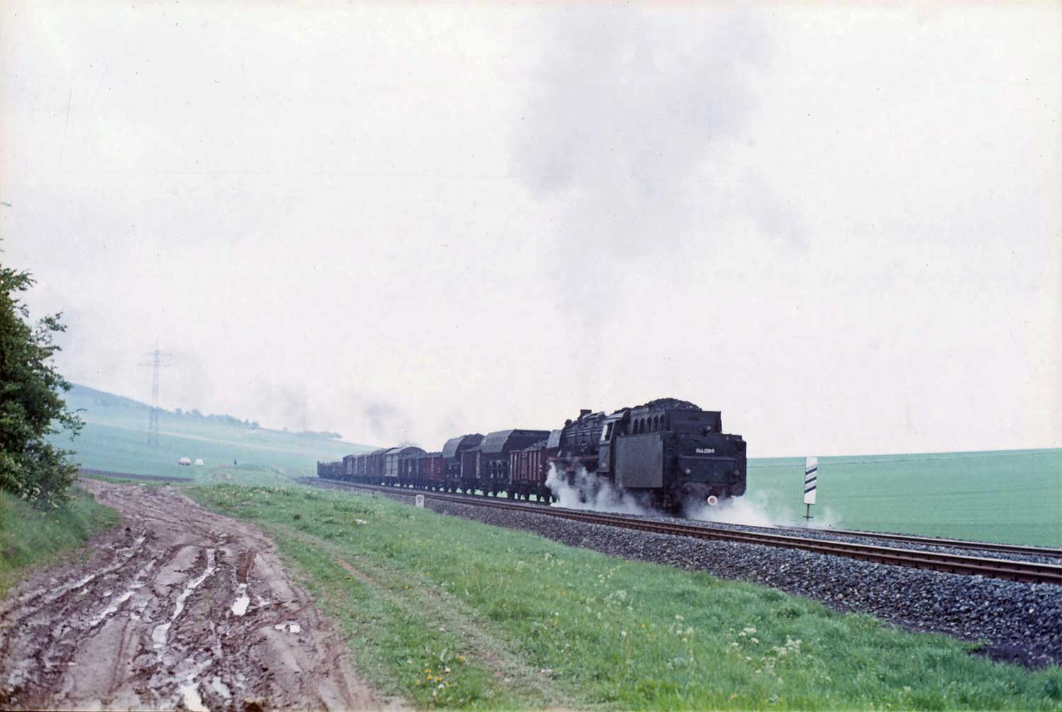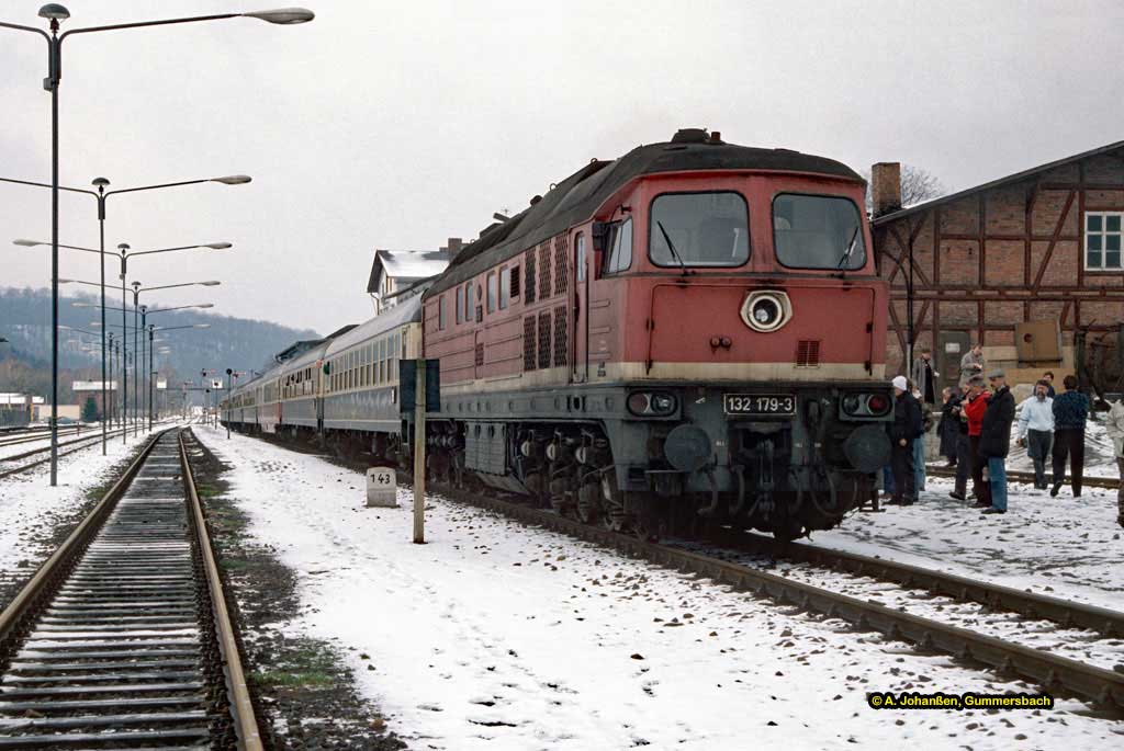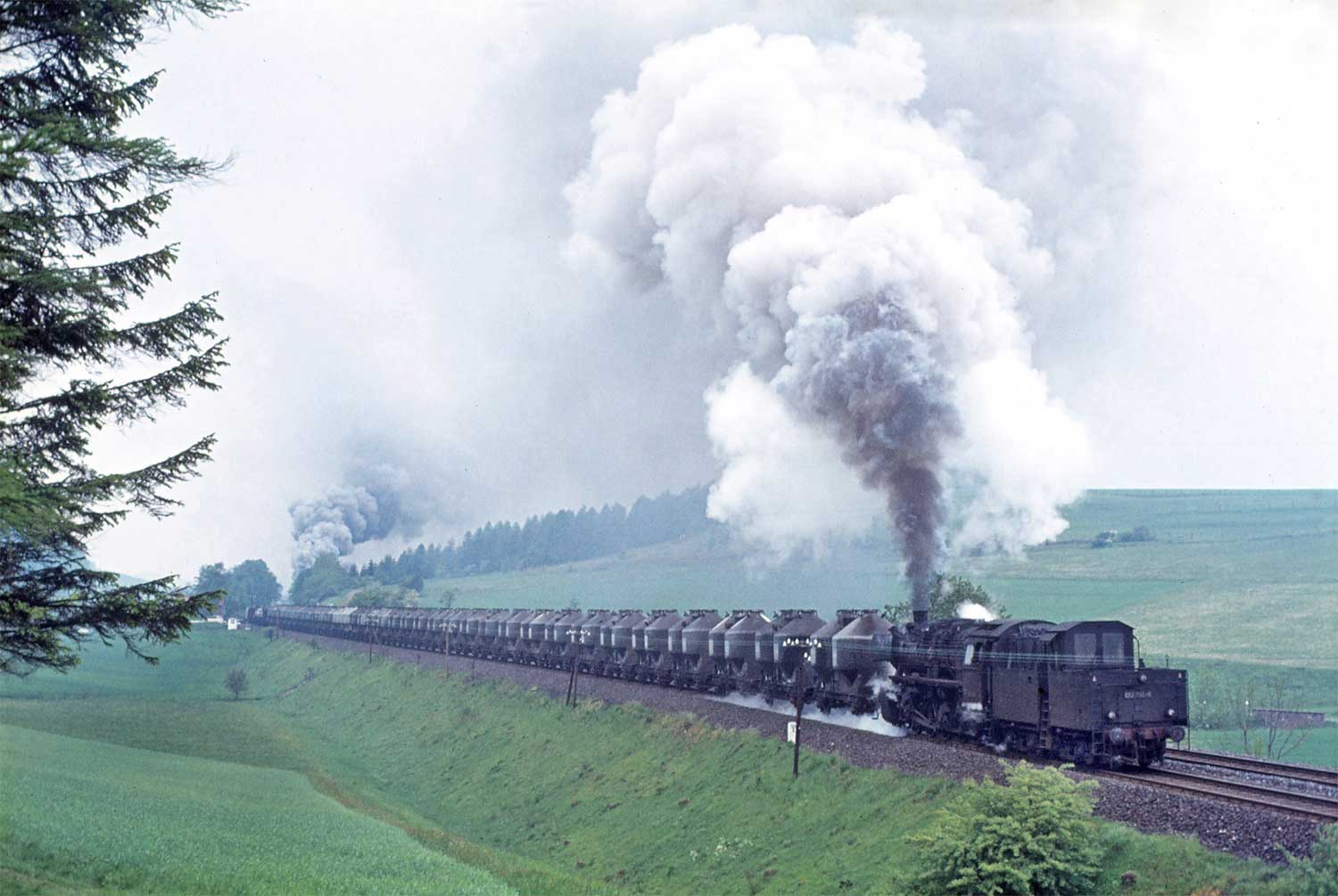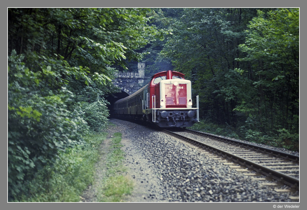 Nur ein kurzes Gastspiel gab die Baureihe 52 im Bw Nordhausen, weil nach der Abstellung der BR 44 nicht genügend Diesellok‘s zur Verfügung standen. Vorwiegend im Güterzugdienst, aber auch vor Personenzügen wurde sie eingesetzt. Im Juni 1983 ist 52 8179 bei Nordhausen Salza mit einem Pz nach Ellrich unterwegs. Am Regler stand Peter „Pollo“ Poloczek. Ihm sei dieses Foto gewidmet, viel zu früh musste er den Führerstand verlassen.