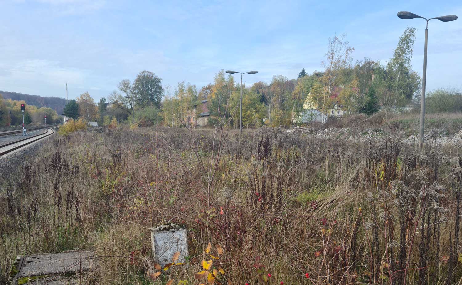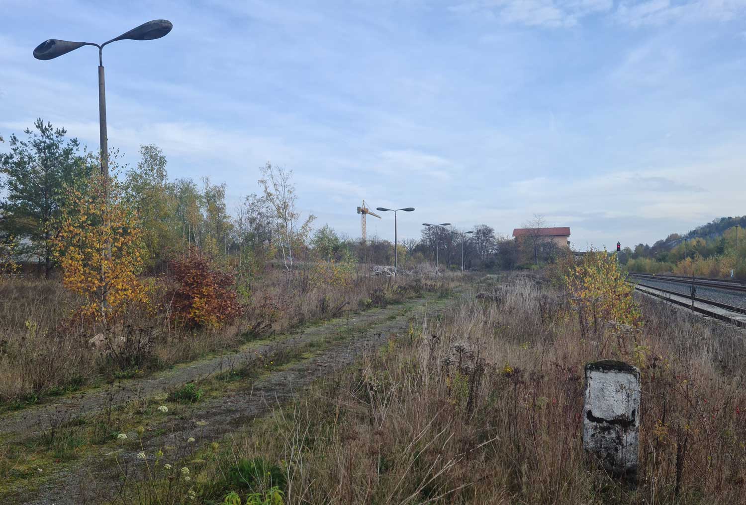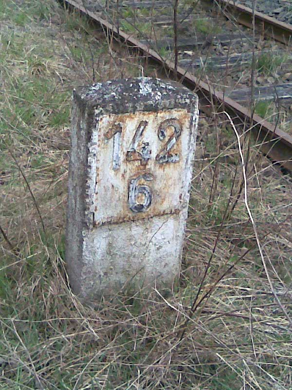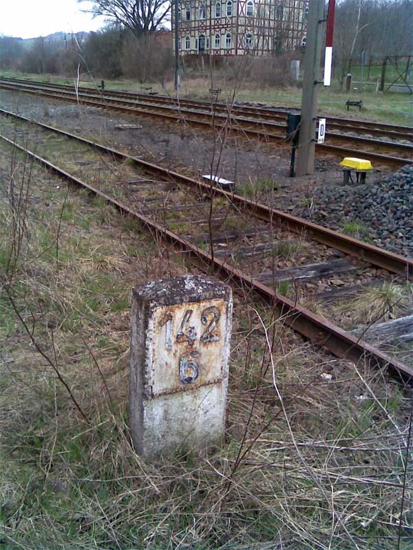 km 143,0 (Stein und Tafel) in Ellrich - Blick Richtung Nordhausen