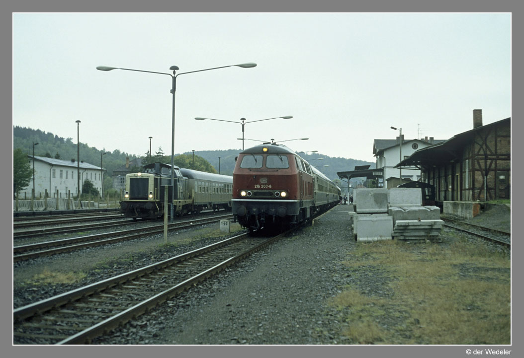 212 045 hat ihren Silberlingzug nach links ausgesetzt, 216 200 mit E 2057 (Northeim - Nordhausen)