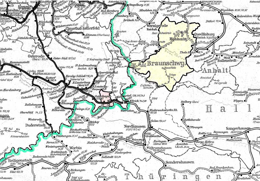 Gleichzeitig war das zu Braunschweig gehörende Gebiet des östlichen Kreises Blankenburg und damit 1945 zur britischen Zone gehörend, nur über eine Straße und eine Schmalspurbahn erreichbar.