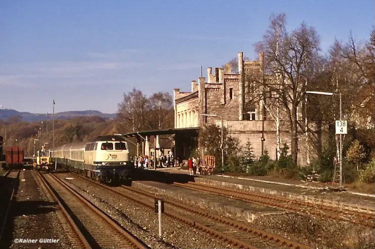 Walkenried | 138,37 | km 24,3 der Strecke Walkenried 0,0 - Brunnenbachsmühle 20,28 - Braunlage 24,25 - Wurmberg 27,57 (Südharz-Eisenbahn) |
