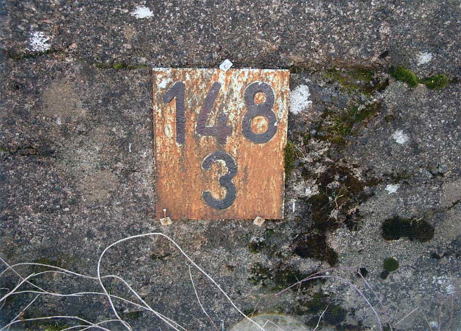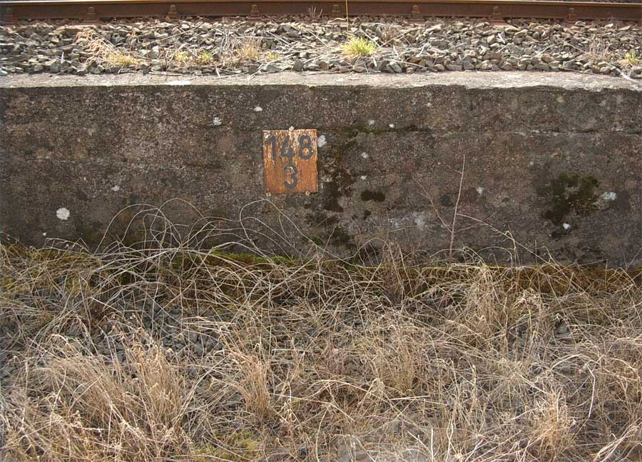 km 148,3 - Bf Woffleben - Metalltafel an einer Stützmauer