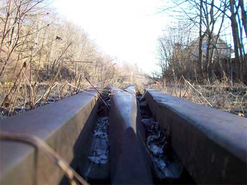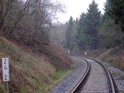 Kurz hinter dem Lippelsdorfer Tunnel sieht man am gegenüberliegenden Hang den weiteren Verlauf der Strecke.