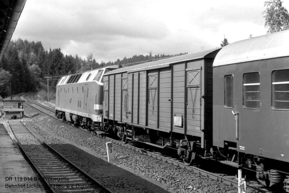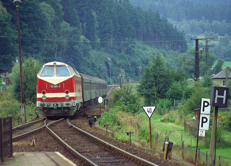 Probstzella 0,00 km 164,99 der Strecke (Leipzig Hbf 0,0) - Leipzig-Leutzsch 6,69 - Zeitz 44,61 - Gera Hbf 72,81 - Saalfeld (Saale) 140,01 - Probstzella 164,99 - Grenze DDR/BRD 166,66 = 52,91 - (Hochstadt-Marktzeuln 0,0)