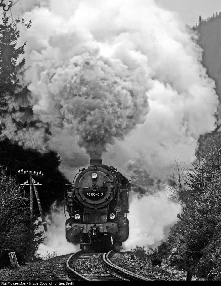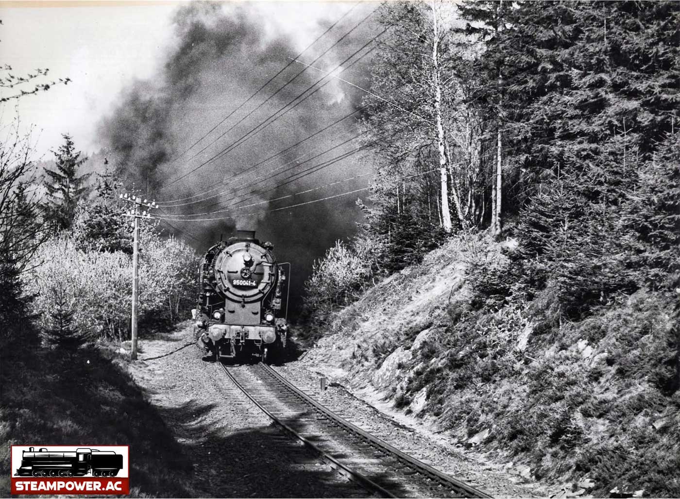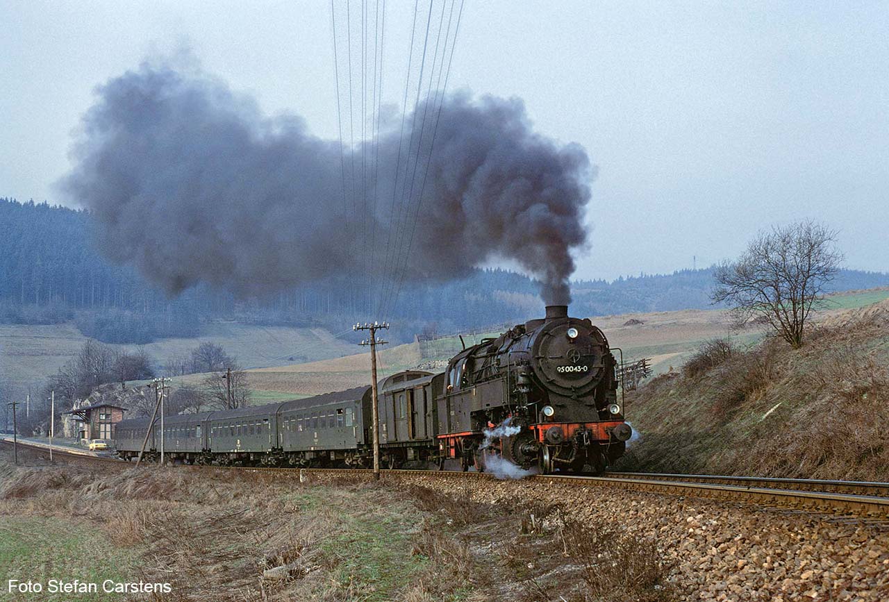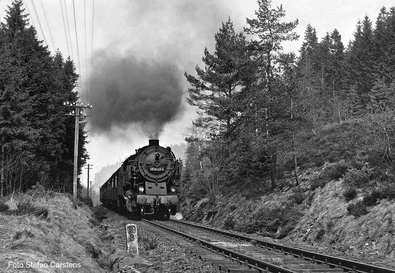 95 027 mit Güterzug bei der Ausfahrt im Bf Ernstthal am Rennsteig am km 23,6