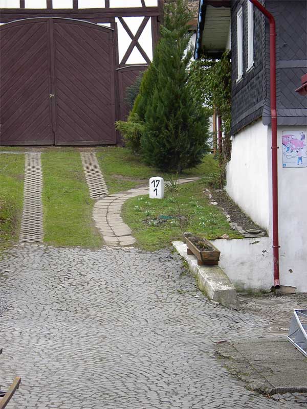 km 0,5 (Tafel und Stein) in Rottenbach - Blick Richtung Streckenanfang