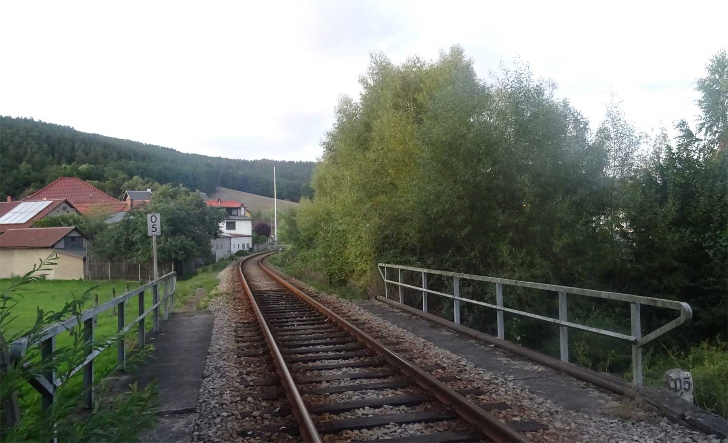 Links verläuft das Gleis in Richtung Königsee (Thür)