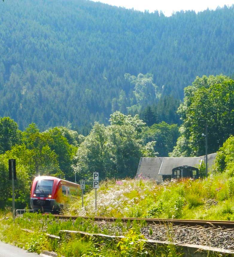 Einfahrt in den Bf Schwarzburg aus Richtung Rottenbach