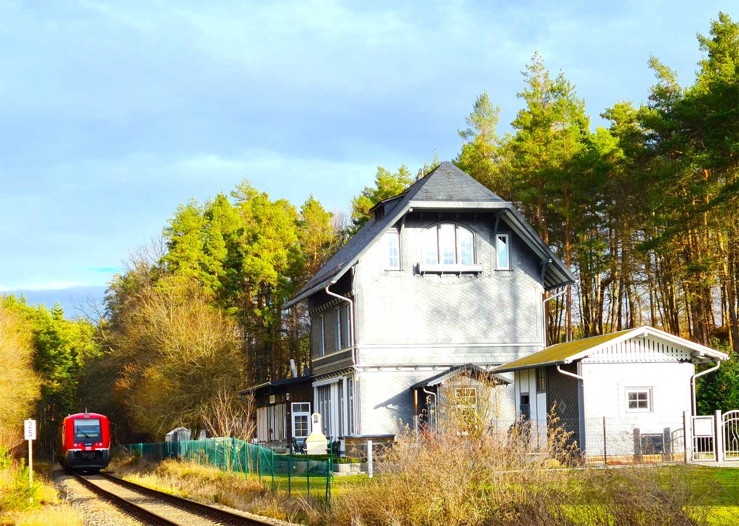 | Obstfelderschmiede | 14,41 | km 0,0 der Strecke Obstfelderschmiede 0,0 - Lichtenhain 1,40 - Cursdorf 3,94 |
