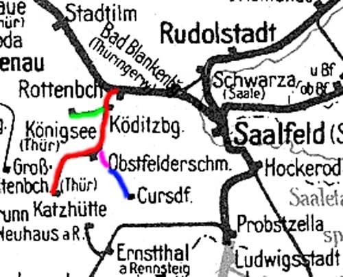 | Rottenbach - Köditzberg - Königsee (Thür) | 6,88 km | Eröffnung: 16.12.1899 |
