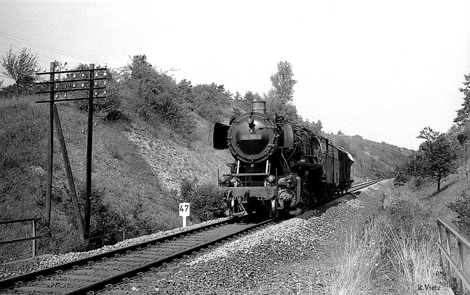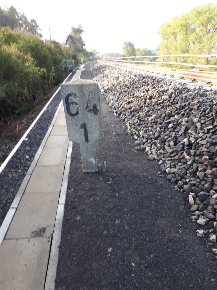 km 50,8 (Tafel) und km 50,9 (Stein) zwischen Oberstreu und Mellrichstadt Bf