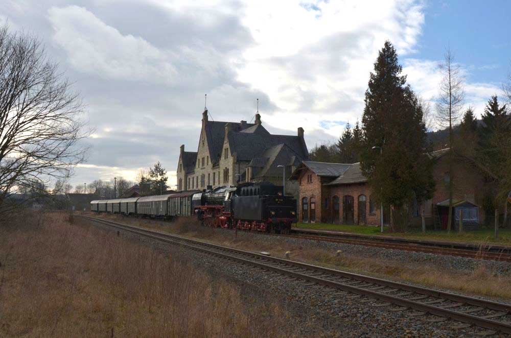 Meiningen | 77,83 | km 60,64 der Strecke Eisenach 0,0 - Meiningen 60,64 - Eisfeld 108,26 - [Coburg 130,19 - Lichtenfels 150,98] |