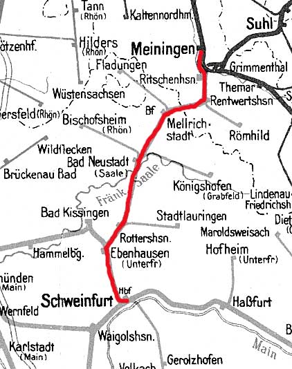 Schweinfurt Hbf 0,0 - Bad Neustadt (Saale) 38,77 - Meiningen 77,90