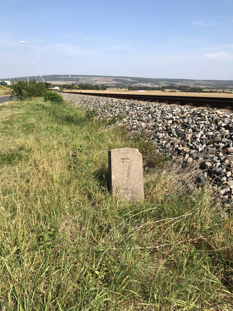 Im Hintergrund km 87,4 der Strecke Halle (Saale) Hbf - Erfurt Hbf - Bebra - Guntershausen