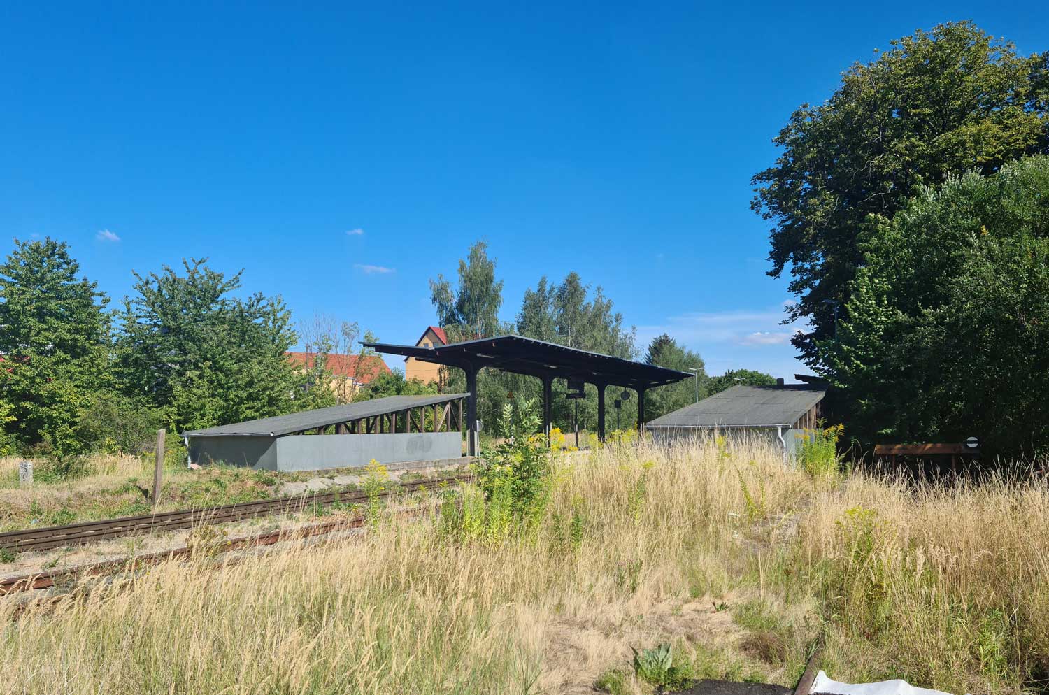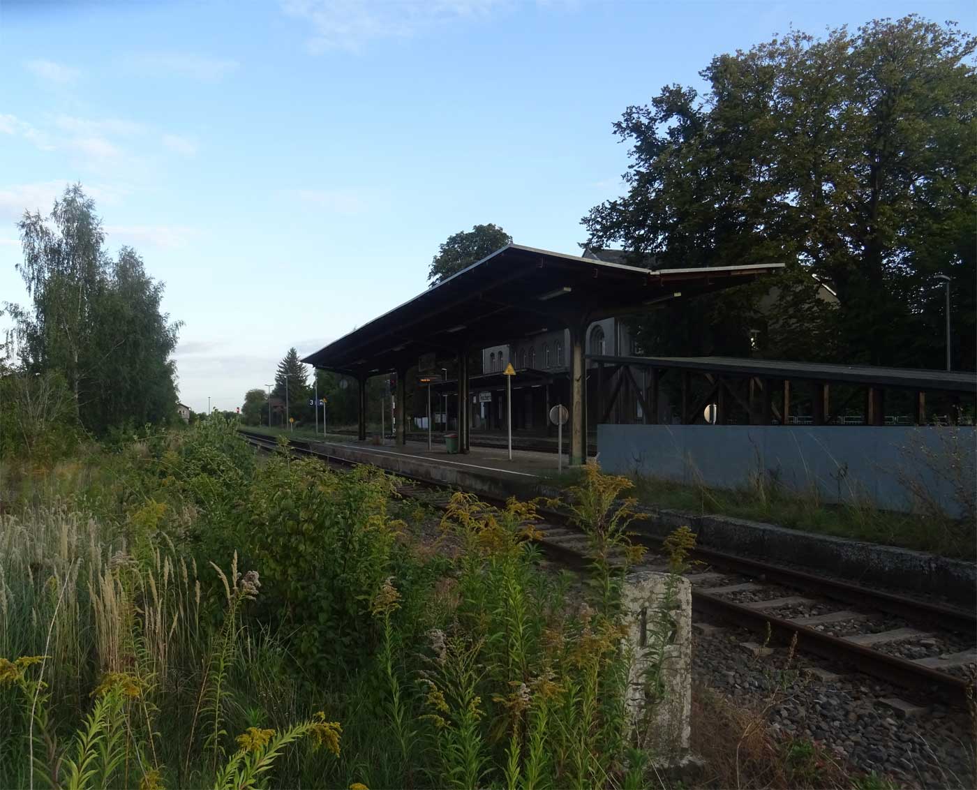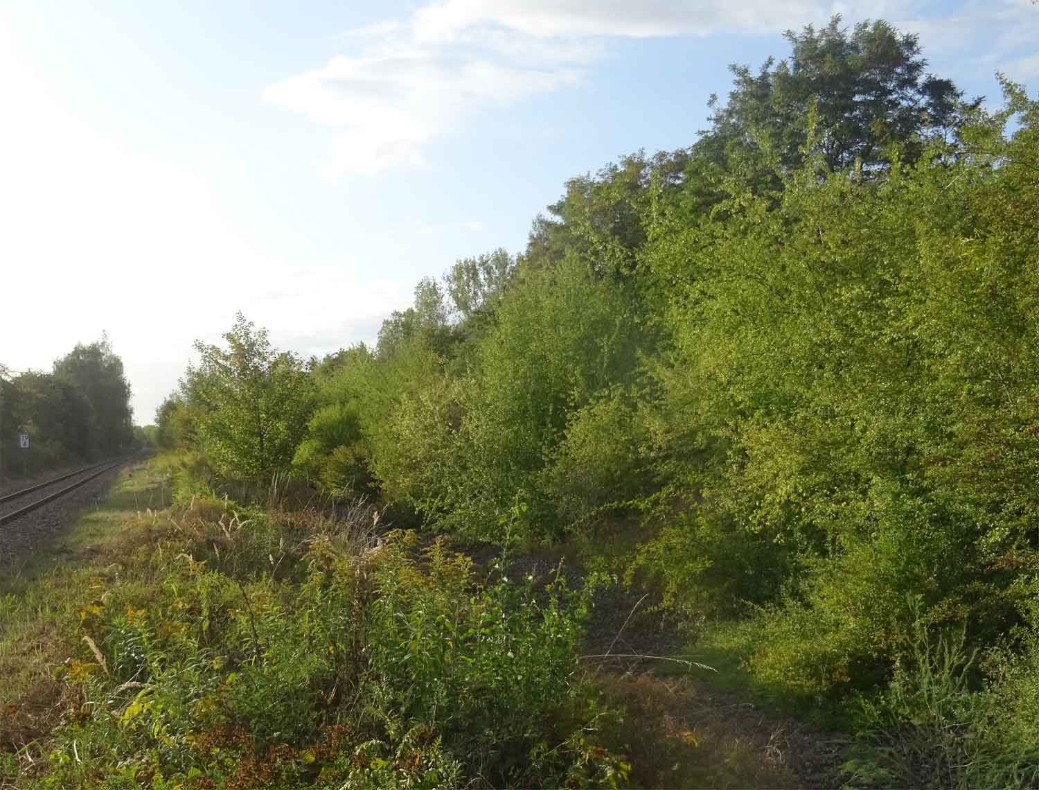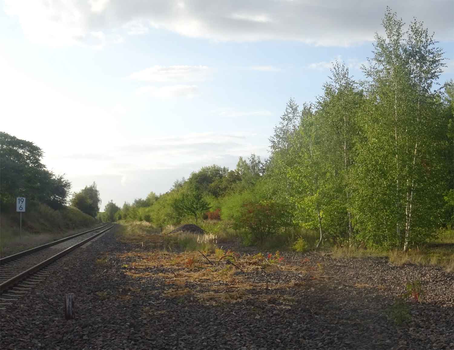 Ganz links (zugewachsen) das Gleis der Güterbahn Tröglitz - Zeitz.