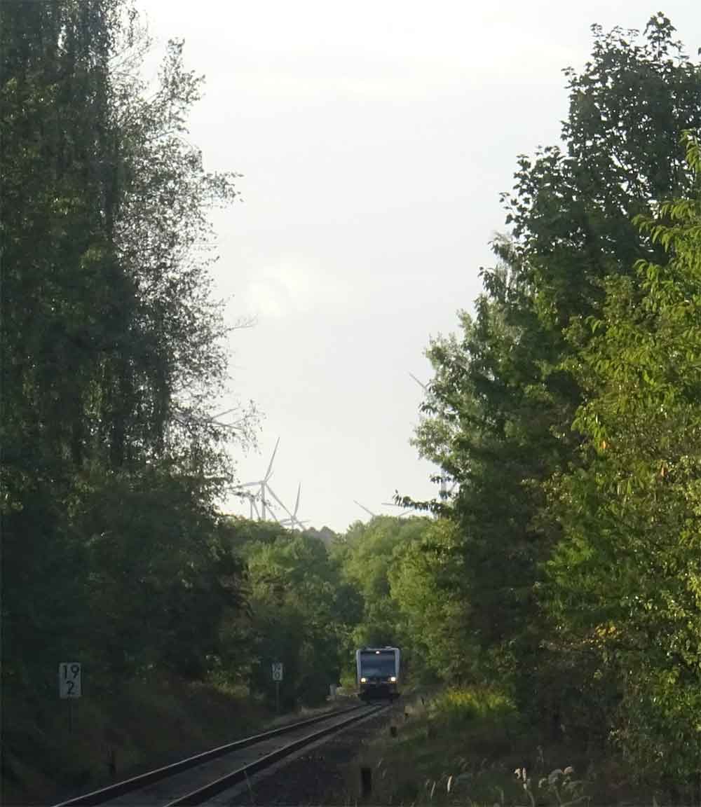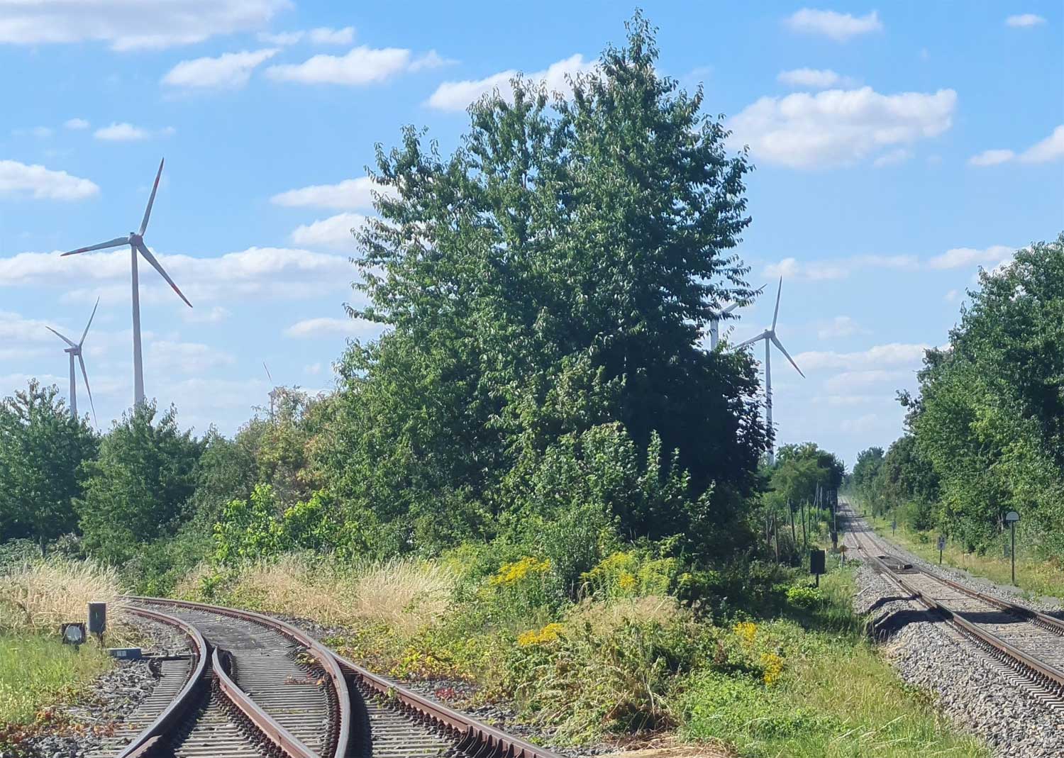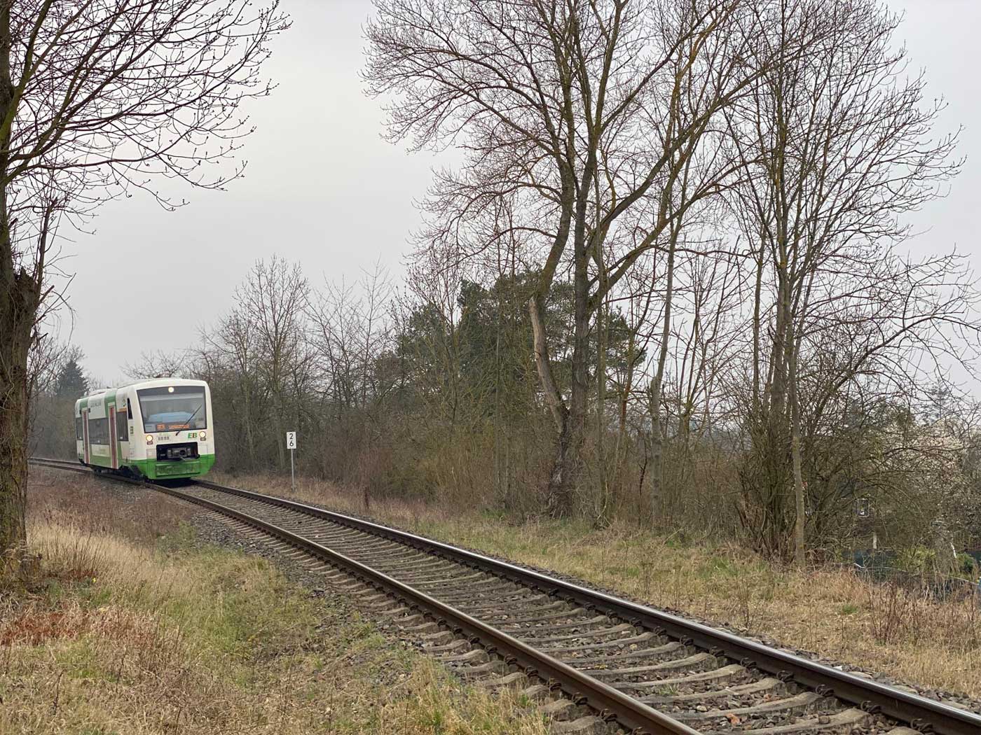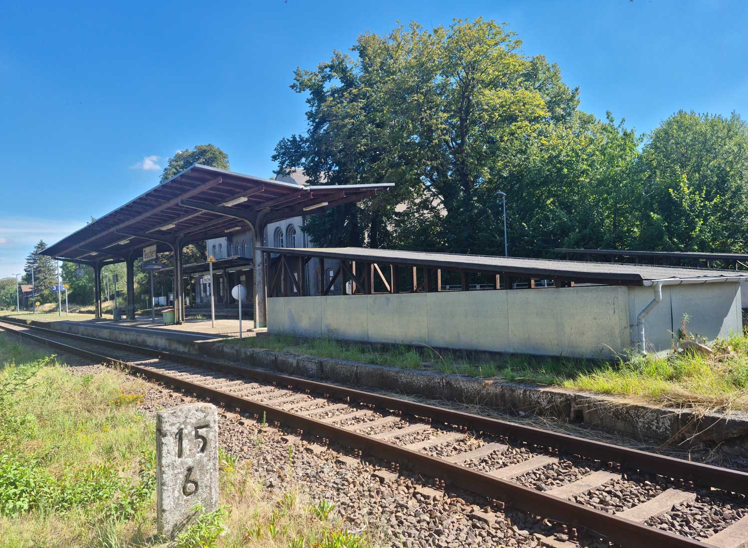 Ganz links (zugewachsen) das Gleis der Güterbahn Tröglitz - Zeitz.