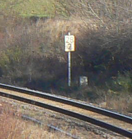 | km 44,61 der Strecke (Leipzig Hbf 0,0) - Leipzig-Leutzsch 6,69 - Zeitz 44,61 - Gera Hbf 72,81 - Saalfeld (Saale) 140,01 - Probstzella 164,99 - Grenze DDR/BRD 166,66 = 52,91 - (Hochstadt-Marktzeuln 0,0) | ||