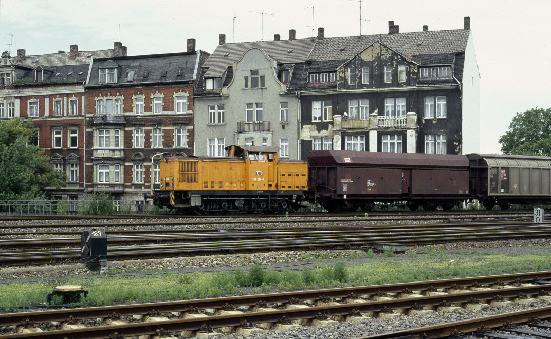 Rechts unten ein Gleis und ein Planum der Strecke Leipzig/Leutzsch - Probstzella.