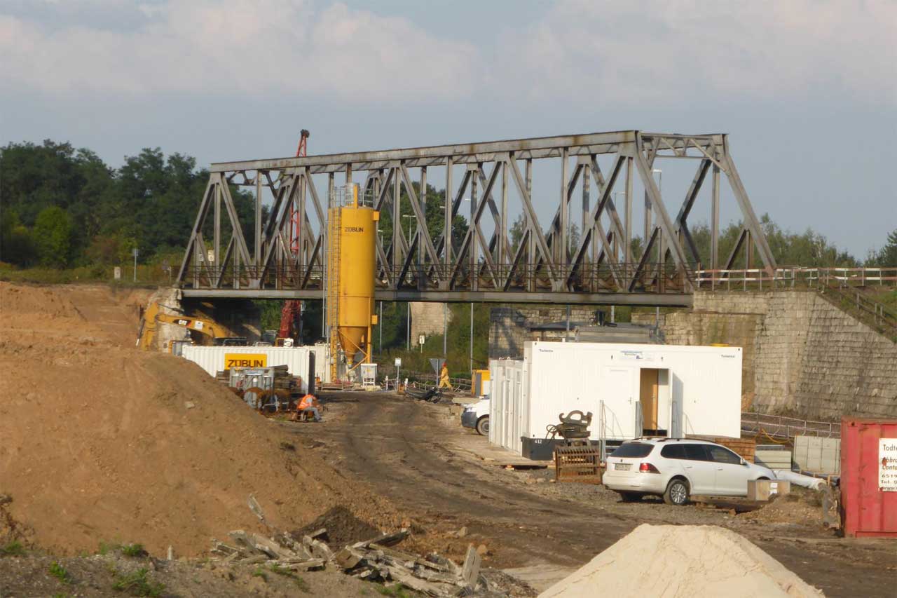 Man sieht schon die neue Brücke daneben.