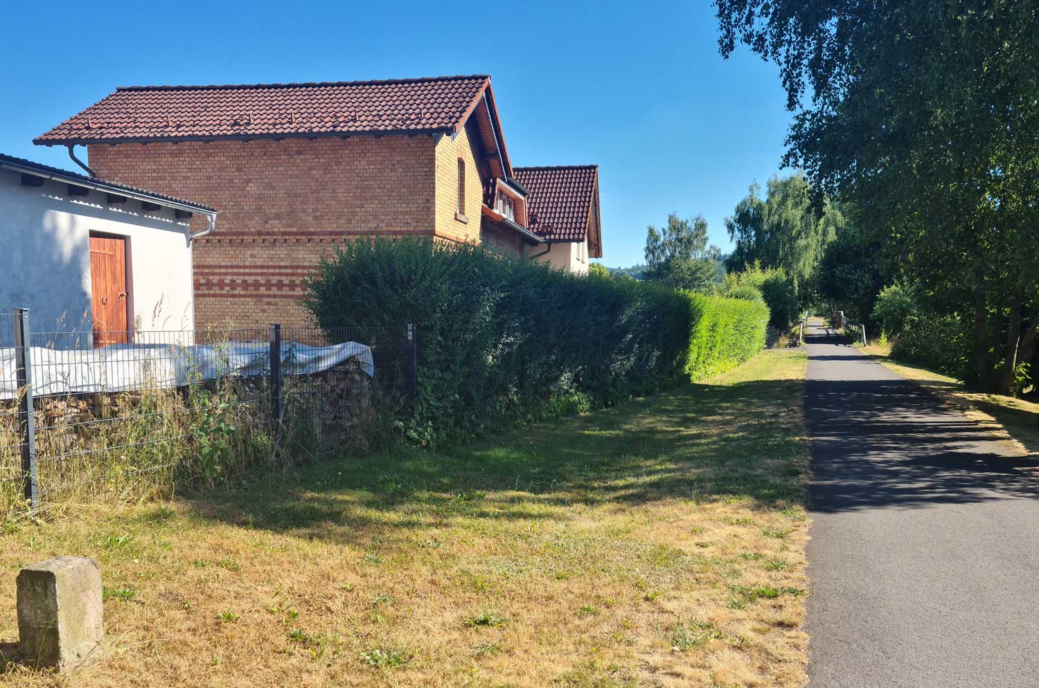 rechts das bereits abgebaute Gleis nach Tann (Rhön) etwa bei km 28