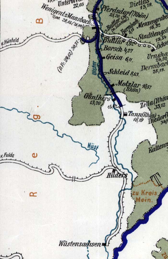 Wenigentaft-Mansbach 0,0 - Streckenunterbrechung - Grenze DDR/BRD 12,30 - Streckenunterbrechung - Günters 13,70 - Tann (Rhön) 16,19