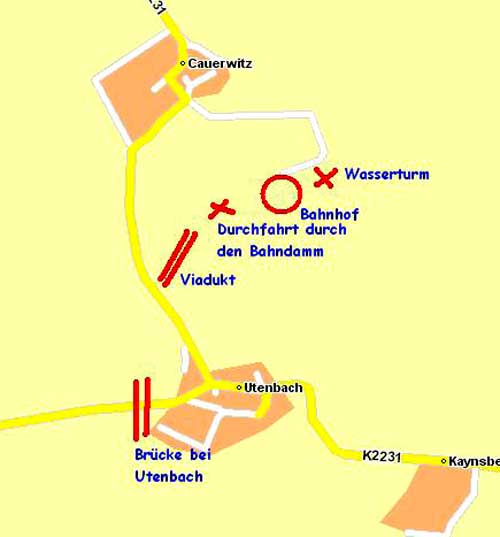 Lage der Bauwerke bei Untenbach und Cauerwitz
