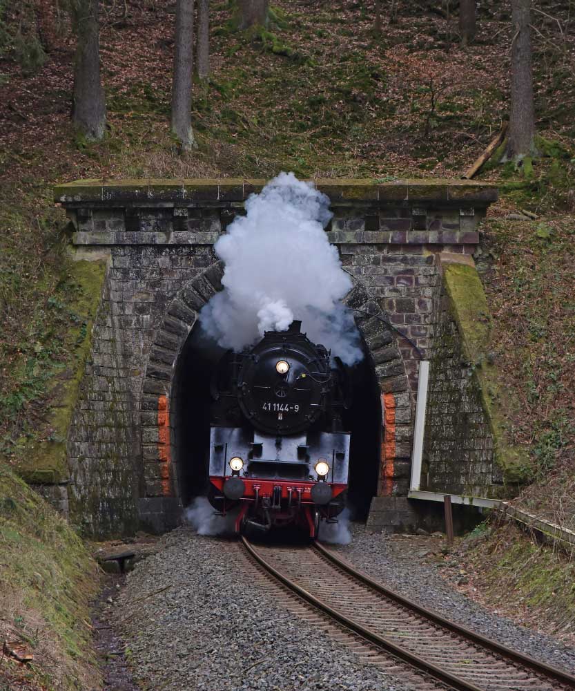 Rote Bügel Tunnel - Westportal - 41 1144 mit Rodelblitz