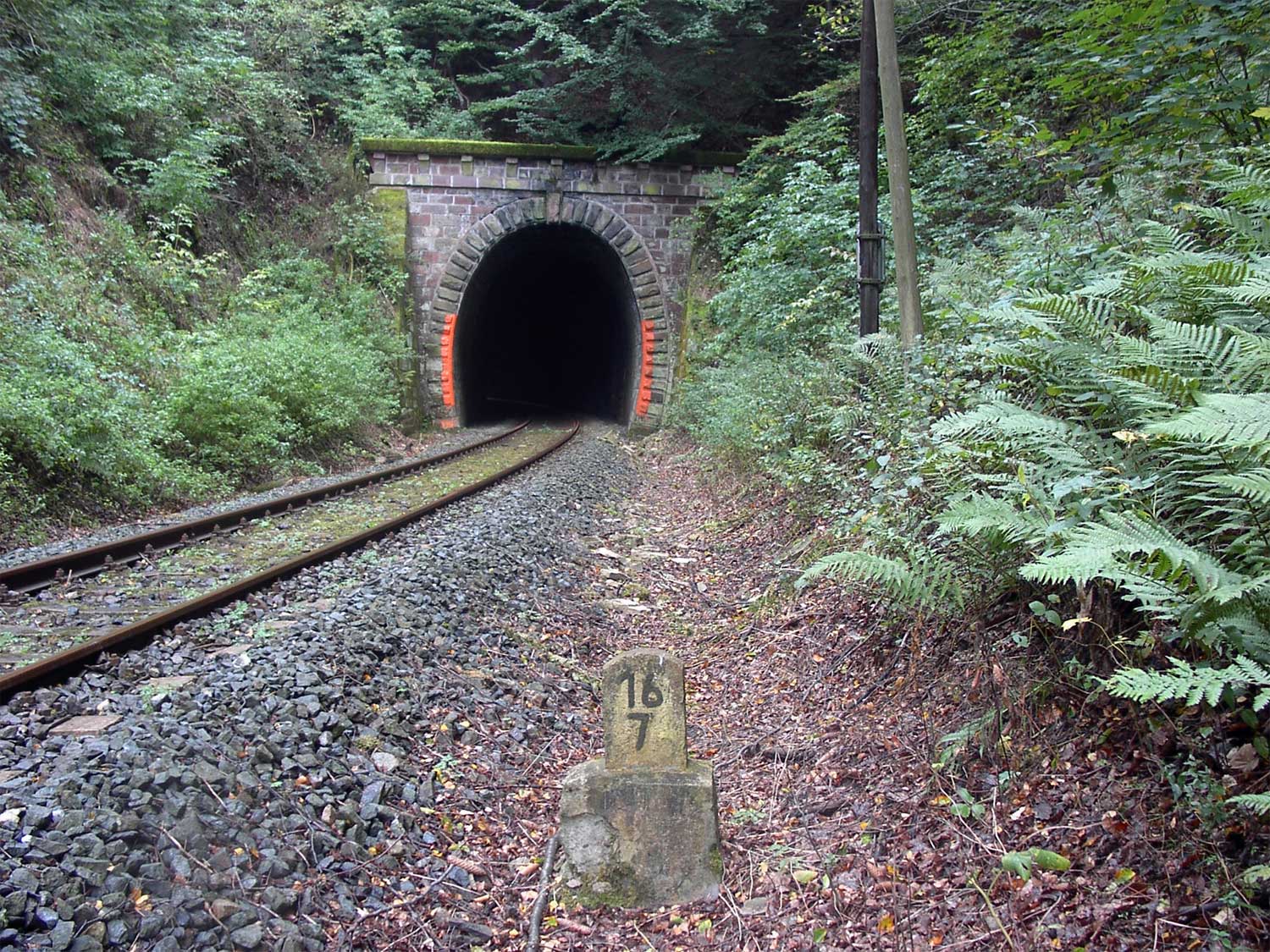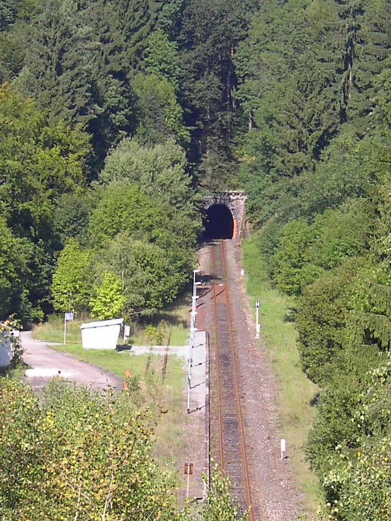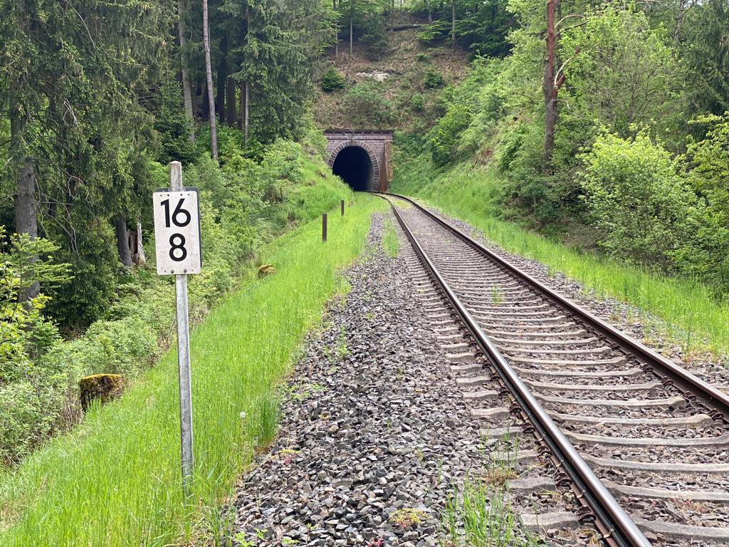 km 16,6 zwischen Altersbach und Schmalkalden-Fachhochschule (früher: Schmalkalden-Stillertor) im Hirschberg-Tunnel
