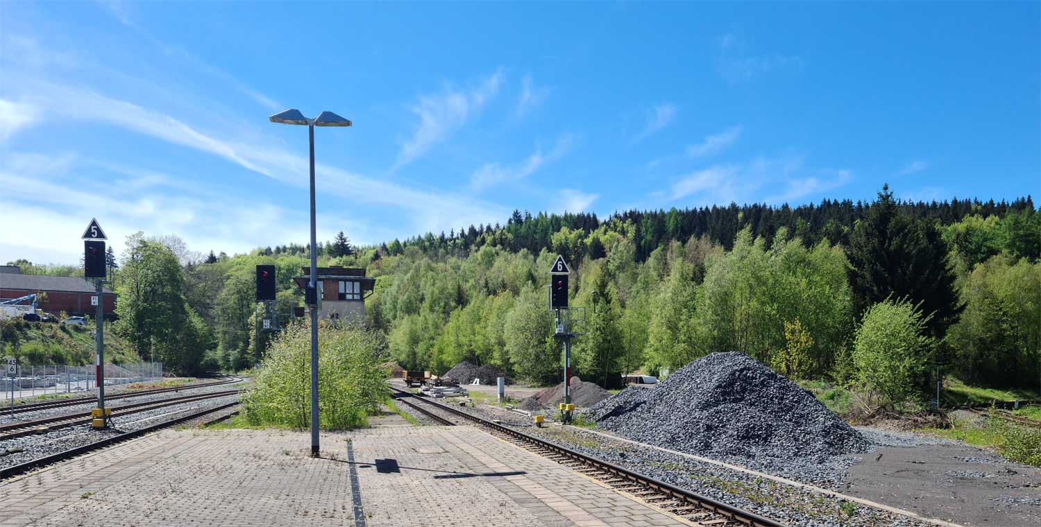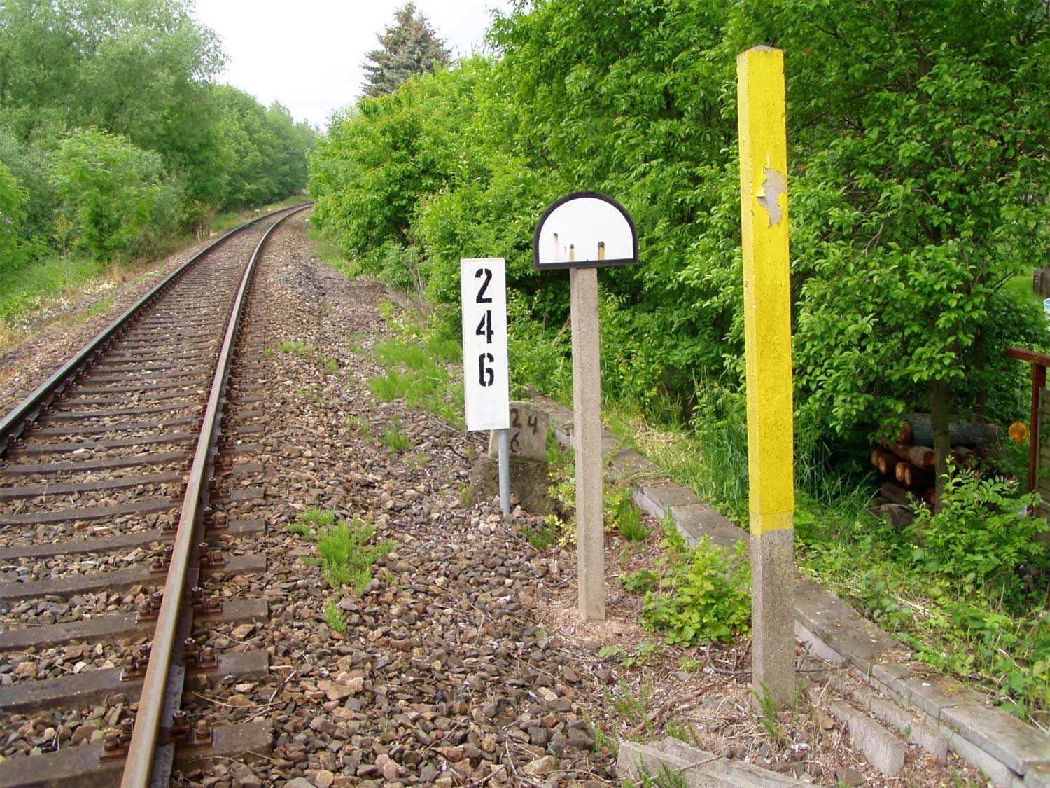 | Kilometrierungsanfang (neu) | Zella-Mehlis | Weiche 4 | -0,118 |